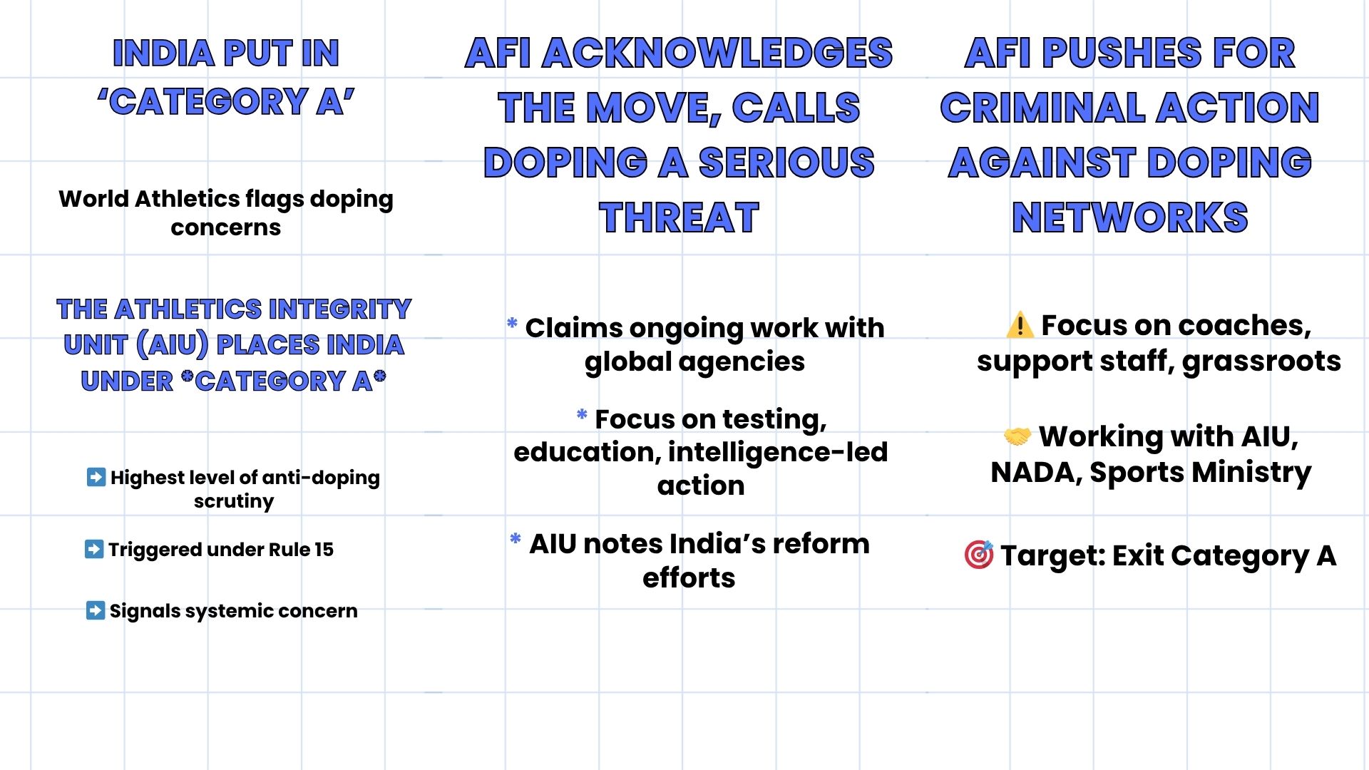 India’s athletics system has come under sharp global scrutiny after the Athletics Integrity Unit (AIU) officially categorised the country as a ‘Category A’ nation —... Read More